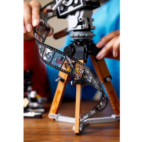 - Acest set de colectie detaliat include o camera de filmat in stil vintage, cu o sectiune in spate cu articulatii, care contine o surpriza, si o banda de film cu imagini din 20 de filme Disney memorabile, o clacheta a regizorului cu spatiu pentru cele 3 minifigurine LEGO Disney, 2 figurine animal LEGO si o camera multiplan cu 3 ecrane imprimate care arata cum a fost realizat scurtmetrajul The Old Mill.