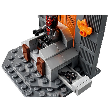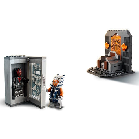 - Include un tron cu compartiment secret pentru un blaster, plus un fundal decorativ cu o fereastra care poate fi scoasa in afara si un sarcofag Mandalorian cu spatiu la interior pentru o minifigurina LEGO.