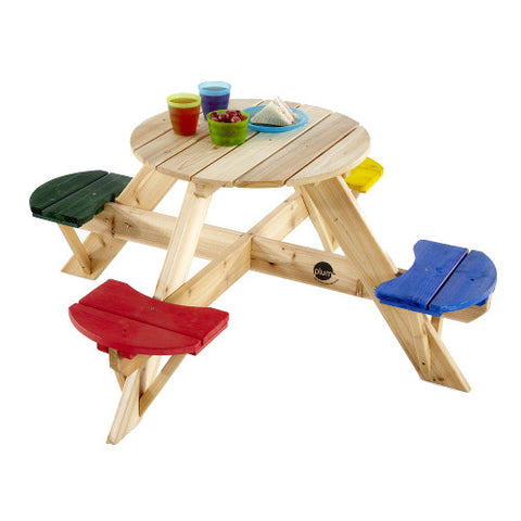 Masa de Joaca Plum din Lemn cu 4 Scaune Colorate pentru Copii