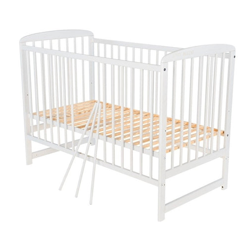 Patut din Lemn BabyNeeds Ola 120x60 cm Alb + Saltea 10 cm