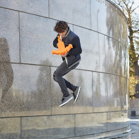- Trageti de parghia de amorsare pentru a trage inapoi blasterul, apoi apasati butonul pentru a lansa un proiectil.