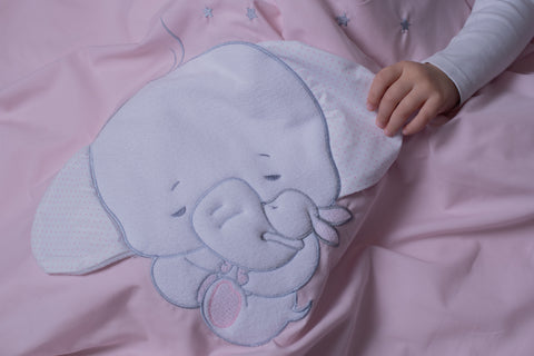 AMY - Lenjerie 3 piese Cu protectie laterala Elefant din Bumbac, 120x60 cm, Roz