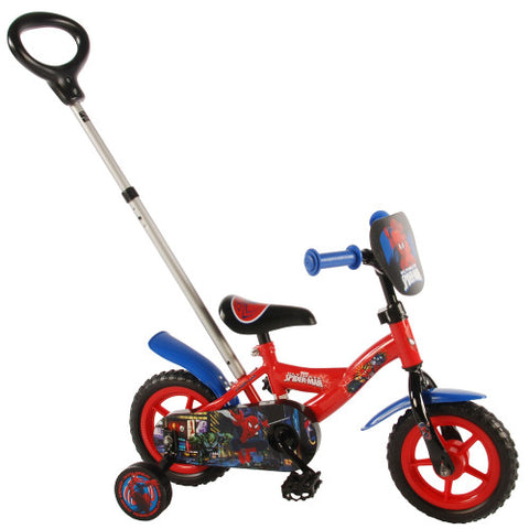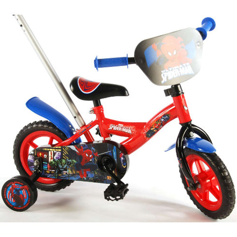 Bicicleta cu Maner si Roti Ajutatoare Spiderman 10 inch