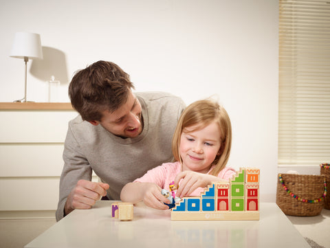 Fabricat din lemn de inalta calitate, acest joc nu doar ca este durabil, dar si estetic, cu blocuri colorate care atrag atentia celor mici. Provocarile sunt structurate pe 4 niveluri de dificultate (Starter, Junior, Expert, Master), asigurand o experienta de invatare progresiva. Fiecare provocare ajuta la dezvoltarea abilitatilor logice, a rationamentului spatial si a spiritului de observatie.