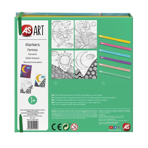 - Contine 2 puzzle-uri cu doua fete (cu 6 piese mari de diferite dimensiuni), 6 markere si un ghid de culoare, detaliat cu imagini pas cu pas pentru a obtine un rezultat deosebit.