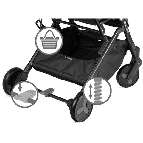 - Cosul generos de sub carucior va devei util cand sunteti la cumparaturi sau daca doriti sa luati cu dumneavostra obiecte de stricta necesitate: servetele, jucarii.