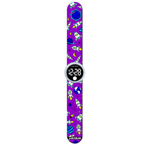 Ceas digital pentru copii model rachete, cu bratara recolorabila, din silicon slap-on