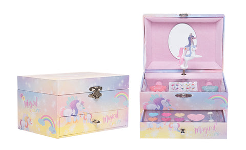 Cutie muzicala unicorn, cu trusa de machiaj si manichiura pentru copii, Treffina