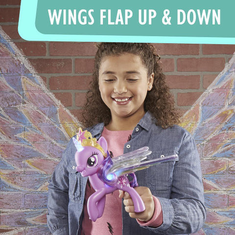 - Twilight Sparkle folosește aripile ei colorate pentru a zbura deasupra Equestriei, raspandind magia prieteniei oriunde merge.