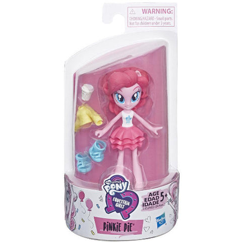 - Cu o dimensiune de aproximativ 8 cm figurina Pinkie Pie are ca si accesorii doua piese vestimentare care o caracterizeaza, o pereche de pantofi si o cana care completeaza tinuta.