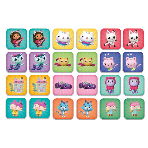 - Jocul include un set de carduri de memorie, fiecare carte fiind ilustrata cu imaginea unui personaj din Gabby's Dollhouse.