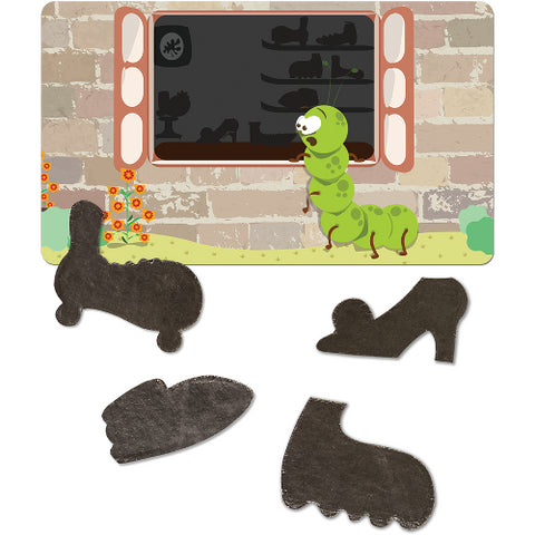 - Setul include: 20 de piese - pantofiori, 20 de carduri cu imagini, o tablita pentru notarea scorului care se sterge cu usurinta, marker special care se sterge de pe tablita, instructiuni.