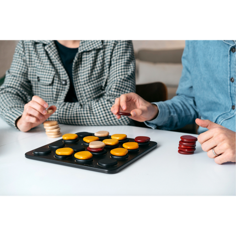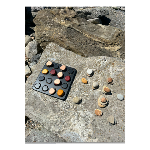 Fiecare jucator primeste 8 pietricele de culoarea sa, iar pietricelele neutre sunt asezate in cele 4 colturi ale tablei. Jucatorii adauga o pietricica in partea de sus a unei stive la alegere si, la mutare, trebuie sa lase cate o pietricica pe fiecare spatiu traversat. Primul jucator care aliniaza 4 pietricele de culoarea sa din vedere de sus castiga.