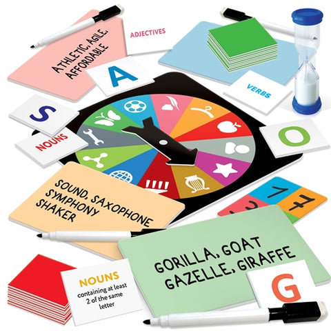 - Setul include: 60 de carduri de inspiratie; 32 de scrisori; 36 de jetoane pentru tabloul de bord; 4 placi; 4 markere de sters; 1 clepsidra; Regulament.