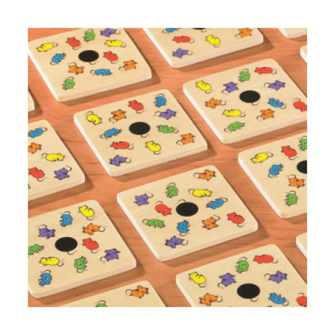 - Jocul contine: 24 de carduri din lemn cu dubla fata (50 x 50 x 4 mm).