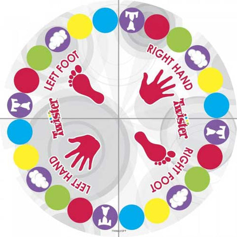 - Contine: un covoras twister, o ruleta cu sageata si suport, instructiuni.