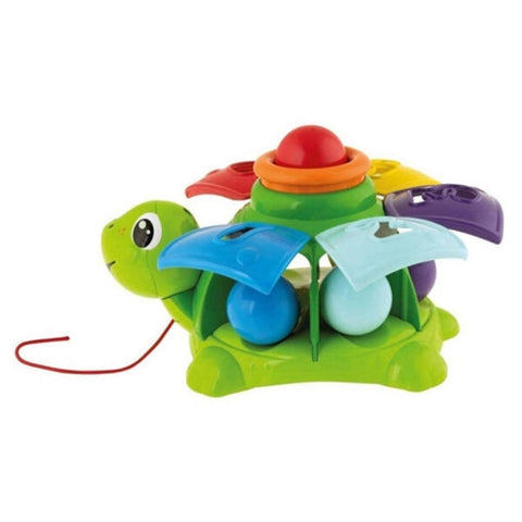 - Pune toate cele 5 bile colorate inauntrul testoasei prin orificiul din partea superioara, apoi apasa pe butonul portocaliu sa vezi cum se deschid toate usile in acelasi timp, eliberand bilele cu un efect suprinzator.