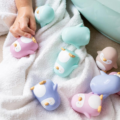 1, 2, 3, 4... Este timpul sa te scufunzi in distractie! Este timpul de spa pentru micutul tau si nu poti rata acesti 4 pinguini adorabili. Cu ei, ora de baie va deveni cel mai vesel si distractiv moment al zilei. Un set must-have pentru a se juca zilnic!