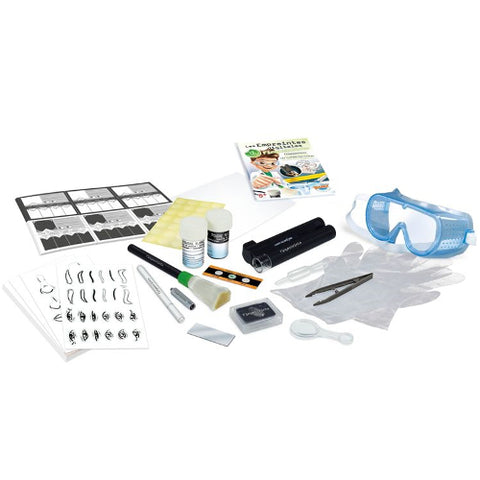 - In acest kit gasiti 12 experimente cu ajutorul carora copiii pot descoperi secretele stiintei criminalistice: pot gasi si compara amprentele, pot analiza indicii, pot construi un portret al suspectului si pot scrie propriile mesaje secrete.