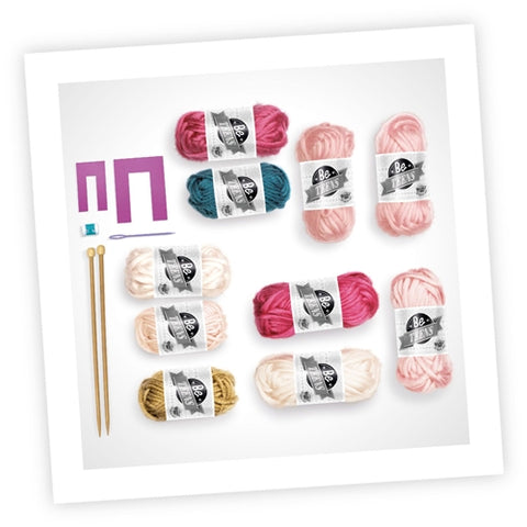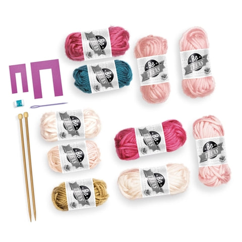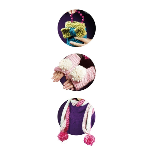 - Contine: 10 ghemuri de lana, 2 andrele de tricotat, 1 contor de randuri, 2 suporturi pentru ciucuri (pompon), 1 ac de plastic, instructiuni ilustrate
