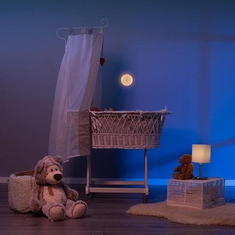 - Lampa de veghe poate fi controlata wireless prin Bluetooth din aplicatia mobila Smartlife (disponibila gratuit in App Store si Google Play) sau prin asistent vocal, fara a fi nevoie sa intrati in camera copilului.