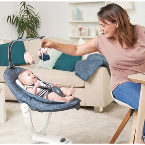- Leaganul Swoon Motion a fost creat cu un sezut ergonomic, care se poate roti la 360 de grade, pentru ca bebelusul sa fie intotdeauna in campul vizual al parintilor.
