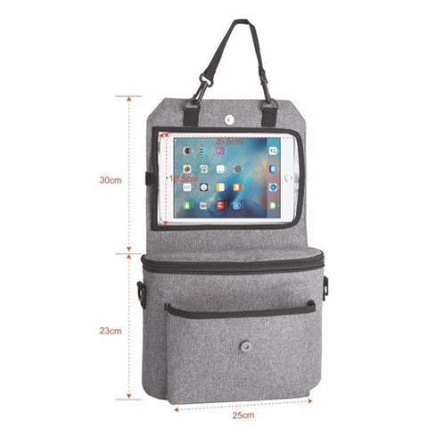 • Acest mic obiect poate face din fiecare plimbare un succes deoarece poate fi folosita atat ca si gentuta purtata pe umar sau pe manerul caruciorului, dar si ca organizator auto care poate fi instalat pe bancheta autoturismului.