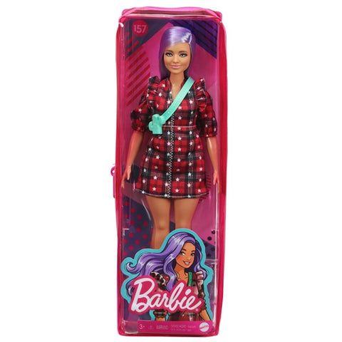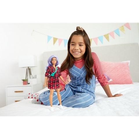 Papusa Mattel Barbie Fashionista cu Parul Mov si Rochita cu Stelute
