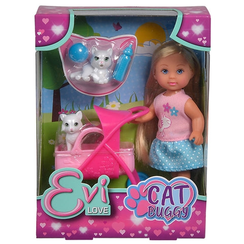 Papusa Simba Evi Love Cat Buggy 12 cm cu 2 Figurine si Accesorii