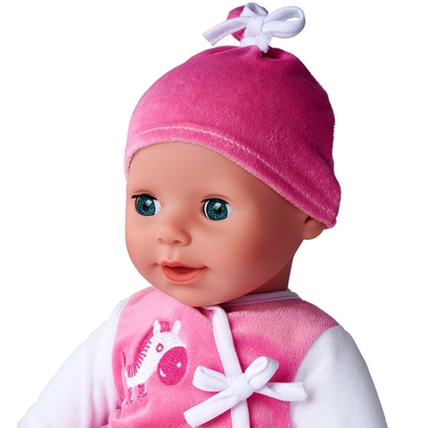 - Setul Laura Babbling contine papusa cu corp moale de 38 cm cu suzeta si un biberon.