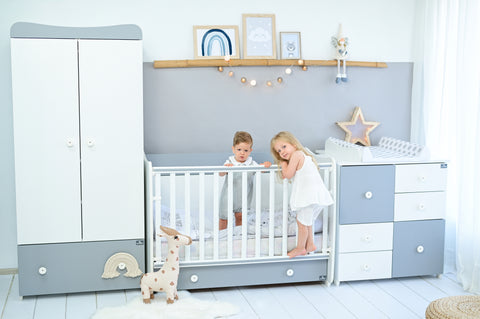 Patutul junior se obtine prin indepartarea lateralei cu gratii si pozitionarea saltelei la cel mai jos nivel, transformandu-se astfel intr-un pat nou pentru copil.