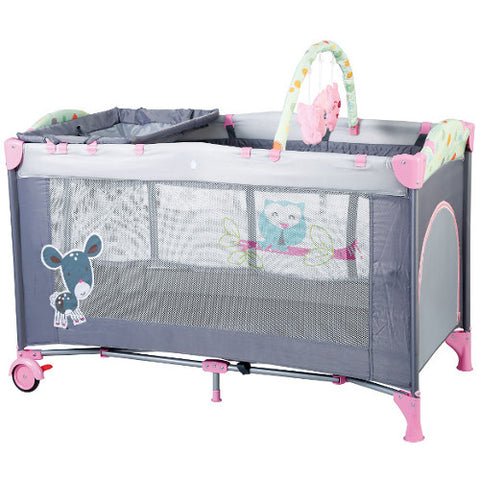 - Patutul poate fi utilizat ca si patut cu doua nivele, (are o salteluta inclusa), dupa care poate fi utilizat ca si tarc de joaca (dupa eliminarea tuturor accesoriilor).