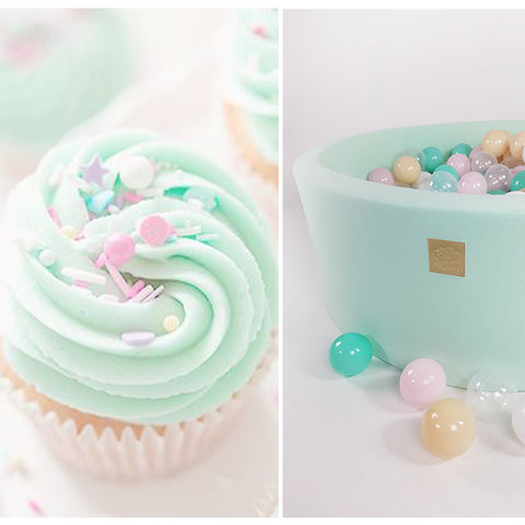 Piscina uscata cu 250 de bile (Alb, Mint, Bej, Roz pastel, Transparent) MeowBaby, Cupcake, 90x30 cm, Mint