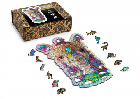 Faceti cunostinta cu un nou tip de puzzle din lemn, care aduce in prim-plan o alpaca extrem de simpatica si colorata! Acest puzzle contine 250 de piese cu forme unice, fiecare dintre ele fiind conceputa pentru a oferi o provocare si o stimulare mentala pentru toate categoriile de varsta.