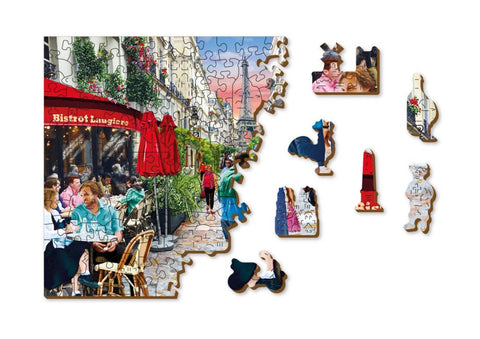Descoperiti magia Parisului cu acest puzzle din lemn, ideal pentru momente de relaxare in familie sau cu prietenii. Cu 505 piese unice, fiecare reprezentand simboluri pariziene precum croissante, pudeli si Arcul de Triumf, acest puzzle va transporta in inima unui cartier plin de viata, cu stradute aglomerate, restaurante si cafenele.
