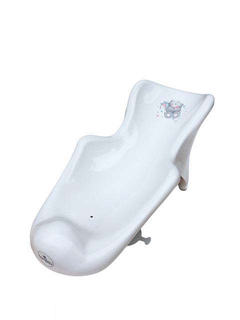 - Se potrivește în cada adulților și în caditele de baie cu dimensiunea minimă de 84 cm, având două ventuze de fixare și piciorușe din cauciuc pentru o aderență sporită.