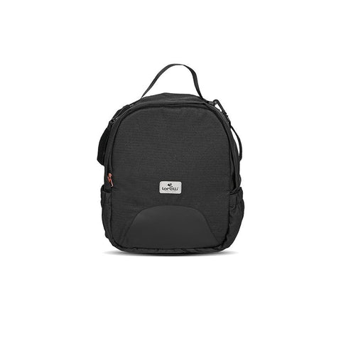 - prevazut cu maner comfortabil pentru carat si 2 bretele scurte laterale cu prindere prin aricei (sistem Velcro), pentru fixarea rucsacului pe orice cadru de carucior.