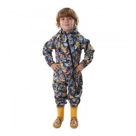 Salopeta Impermeabila KidsCare pentru Copii, cu Protectie la Vant si Apa cu Imprimeu Cosmos