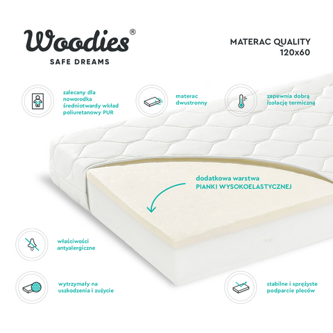 Salteaua de patut bebe, Quality 140 × 70 este proiectata pentru paturi populare de 140 × 70 cm. O saltea pentru bebelus construita pe o structura din spuma PUR cu un sprijin al spatelui perfect, stabil si in acelasi timp elastic, cu o circulatie foarte buna a aerului in acelasi timp. Modelul de saltea Quality 140 × 70 se distinge prin adaugarea unui strat de spuma confortabila, foarte elastica, cu elasticitate crescuta si rezistenta la deformare. O saltea de pat de calitate 140 × 70 cu o astfel de structura asigura mai multa permeabilitate la aer, rezistenta la compresiune si tractiune. Isi recapata rapid forma initiala chiar si dupa o presiune intensa si prelungita. O saltea pentru sugari pe baza de spuma ofera un sprijin adecvat pentru coloana vertebrala inca nedezvoltata a unui copil. Are duritatea potrivita si este flexibila in acelasi timp. Calitatea spumei foarte elastice folosite se traduce prin confortul de somn al bebelusului si creste semnificativ durabilitatea saltelei. Acest material este caracterizat de cel mai inalt nivel de igiena. Are proprietati antibacteriene si este foarte aerisit. Structura spumei nu contine praf si acarieni care ar putea provoca alergii. Umplutura ajuta si la mentinerea uscata a suprafetei saltelei, deoarece excesul de umiditate este rapid transportat departe de produs. Salteaua pentru copii Quality de 140 × 70 cm este inconjurata de o husa delicata cu 3 straturi de 3W. Tesatura reduce semnificativ si protejeaza eficient umplutura impotriva murdariei si a deteriorarii. HUSA DETASABILA: Se poate spala la masina (60°C). 100% Poliester. CULOAREA COPERTEI: alb. DIMENSIUNILE EXTERIOARE ALE PRODUSULUI: Inaltime: 9 cm, Lungime: 140 cm, Latime: 70 cm. BALANTA: 3,1 kg. DENSITATEA SPUMEI: 18 kg/m3 spuma, 35 kg/m3 spuma de inalta rezistenta. DOUA LATURI: Saltea cu doua fete, cu o singura zona. O parte - spuma de inalta rezistenta. Cealalta parte - spuma poliuretanica.