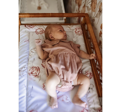 Salteaua de igienă BabySteps este complementul perfect pentru masa de înfășat, oferind condiții sigure și confortabile pentru schimbarea bebelușului. Fabricată din material nețesut de înaltă calitate, aceasta oferă o elasticitate bună și margini stabile, menținând în același timp o greutate redusă a produsului. Se poate spăla la mașină la 60 de grade, cu o viteză maximă de centrifugare de 1200. Condițiile ideale pentru uscare sunt uscarea pe termen scurt pe un radiator fierbinte, salteaua uscându-se după aproximativ 2 ore. Datorită dimensiunilor de 46 x 68 cm, ea poate fi fixată pe cadre cu mărimi adecvate. Pentru un plus de siguranță, masa de înfășat este prevăzută cu două laterale ușor înălțate, care contribuie la prevenirea accidentelor, fiind un element de siguranță obligatoriu. Piesa este moale, căci suprafața și lateralele sunt căptușite cu un material impermeabil, care poate fi ușor de curățat prin simpla ștergere cu o cârpă udă. Designul salteluței este atrăgător, deschis la culoare, cu un imprimeu modern. Dimensiunile externe ale produsului sunt 68 x 46 cm, iar greutatea este de 0,5 kg. Material: 100% poliester impermeabil, umplutură din material nețesut. Recomandată pentru vârsta de 0 la aproximativ 12 luni (greutate maximă 11 kg).