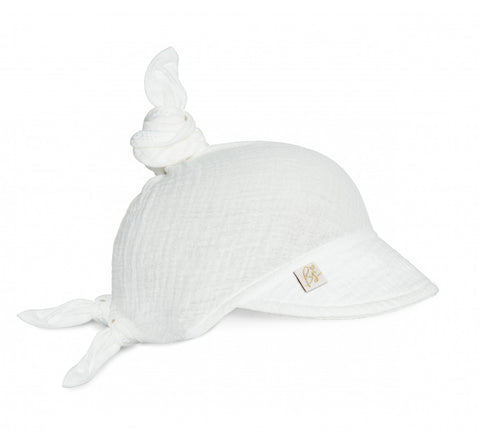 Sepcuta de soare 6 luni - 6 ani reglabila din bumbac muselina cu cozoroc pentru protectie, White