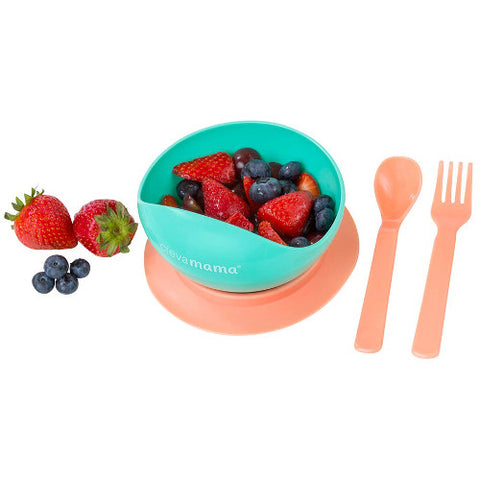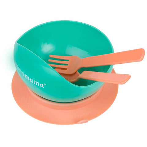 - Acest set este perfect pentru momentele in care copilul invata sa manance singur. Bolul este fixat de masa printr-o farfurie cu ventuza pe spate, impiedicand astfel miscarea de pe masa si varsarea continutului, permitandu-i mamei sa-si concentreze atentia pe ajutarea copilului sa invete sa se hraneasca singurel.