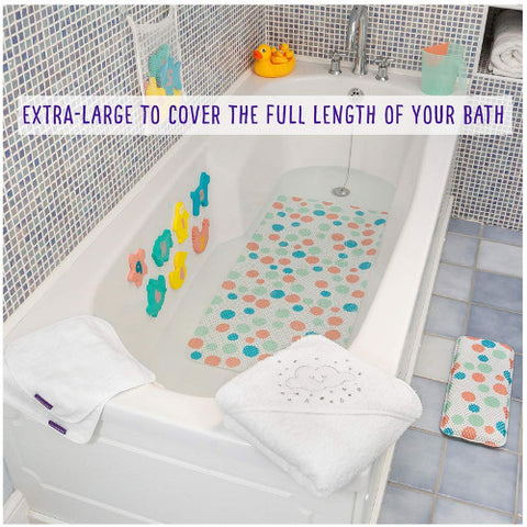 - Baia va deveni o placere pentru cel mic, insa si pentru parinti cand in ajutor va veni acest covoras dragut ce se ataseaza foarte usor pe baza cazii.