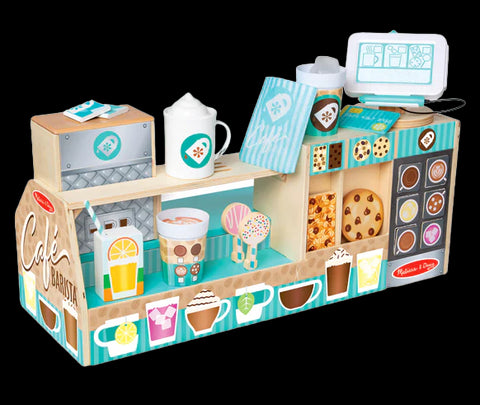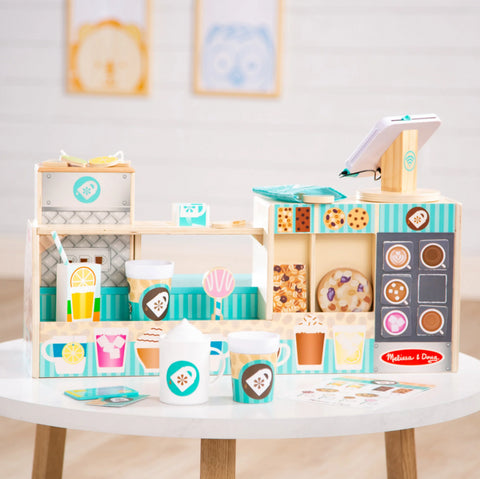 Acest set de joaca din lemn cu accesorii este perfect pentru micii barista in devenire! Setul de joaca Ne jucam de-a Cafeneaua - Barista de la Melissa & Doug incurajeaza dezvoltarea motrica fina, abilitatile de numarare si sortare, recunoasterea culorilor si povestirea. Este ideal pentru copiii cu varsta de 3 ani si mai mari.