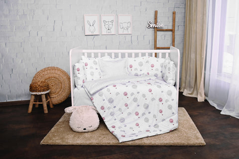 Set lenjerie pat 8 piese, 70x140 cm, bumbac ranforce, Grey Baloons