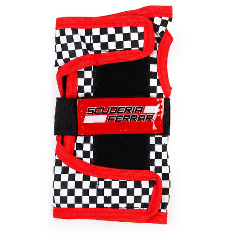 - Setul contine de asemenea casca, marimea M, din material EPS, cotiere, genunchiere toate personalizate cu Ferrari.