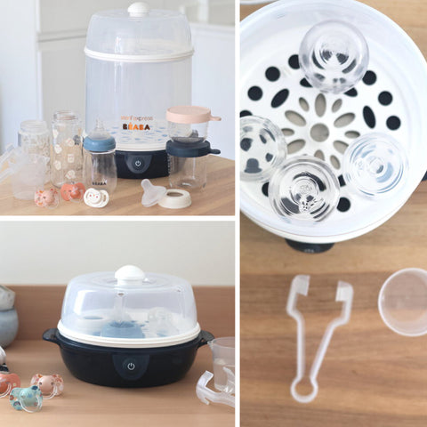 Sterilizator electric 2 in 1 Beaba Steril Express Night Blue, un produs evolutiv, exceptional, adaptabil nevolor oricarui parinte.