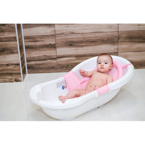 - Forma ergonomica asigura un suport bun impotriva alunecarii, mentine bebelusul in pozitie de baie sigura.