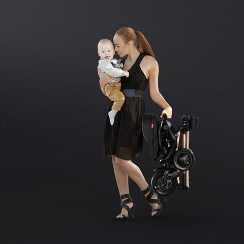 - Dupa cum v-a obisnuit, si varianta Gold a tricicletei Qplay Nova se pliaza facil si rapid in cel mai compact mod, facand fata cu brio rigorilor unui spatiu de depozitare limitat sau unui portbagaj mic.