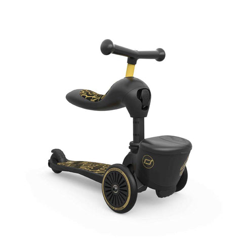 Trotineta copii cu sezut, suport jucarie, transformabila 2in1, HighwayKick 1 Lifestyle Black Gold Limited, 1-5 ani, pana la 50 kg, Scoot Ride